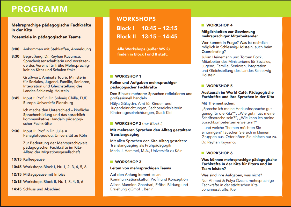 Das Thema "Mehrsprachigkeit in der Kita" hat in den letzten Jahren an Bedeutung gewonnen. Kitas sind noch vielfältiger, multilingualer und multikultureller geworden. Jedoch richtet sich der Blick meistens auf mehrsprachige Kinder und weniger auf mehrsprachige pädagogische Fachkräfte. Dieser Fachtag fokussierte ihre Perspektive, Potenziale, Möglichkeiten und Herausforderungen.